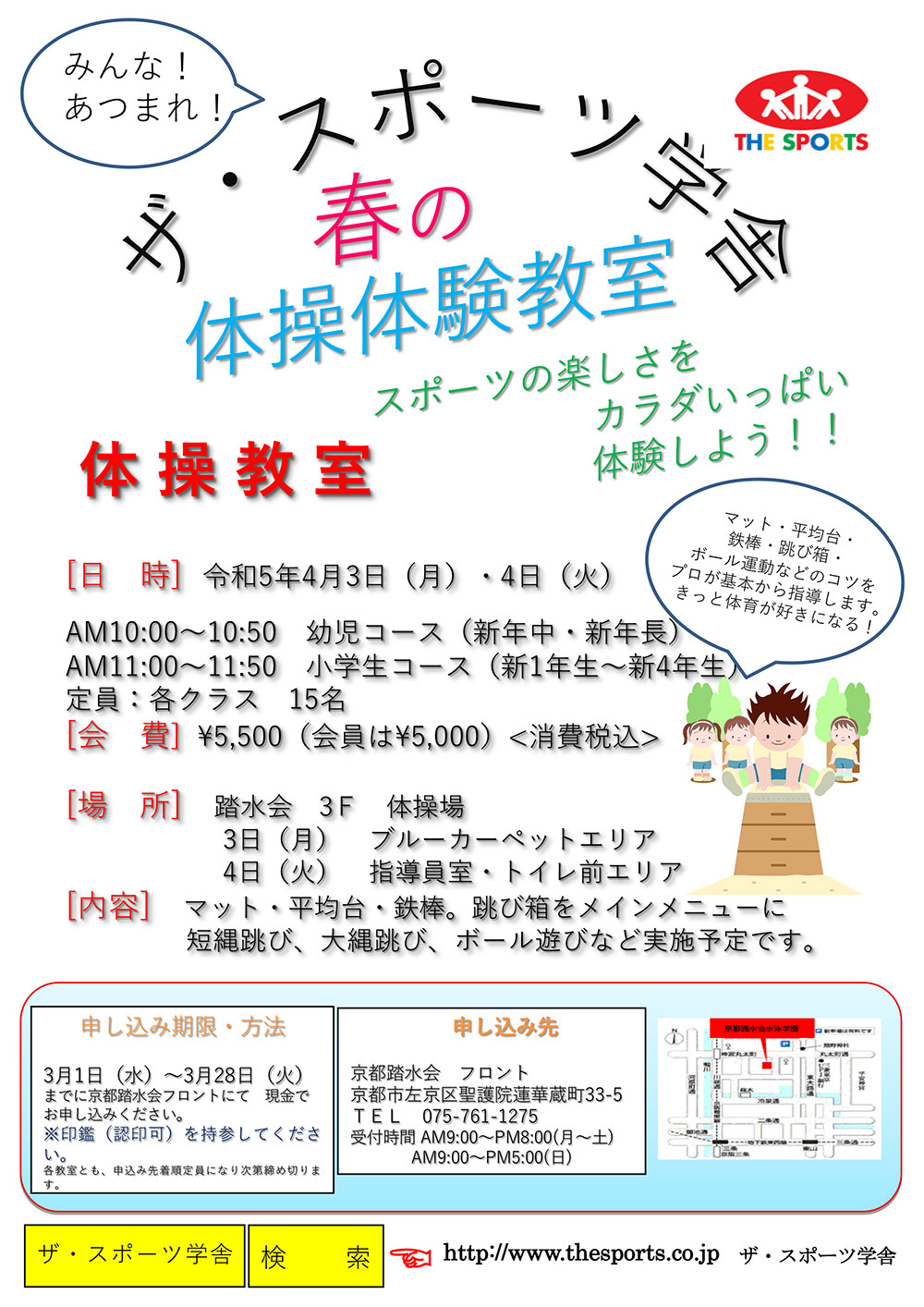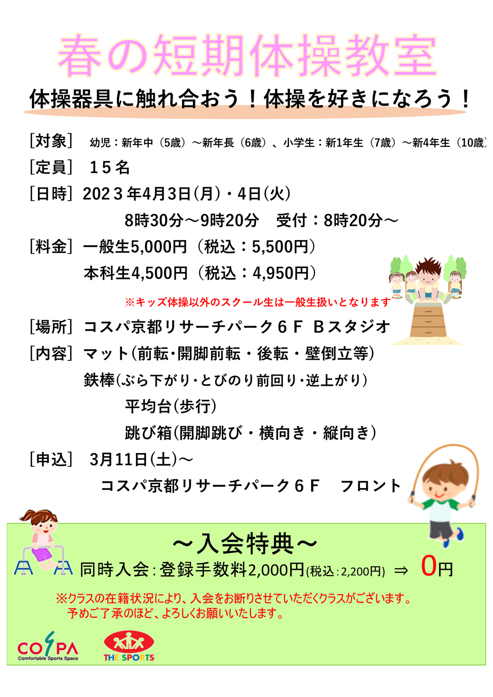春の体操短期教室についてお知らせいたします。