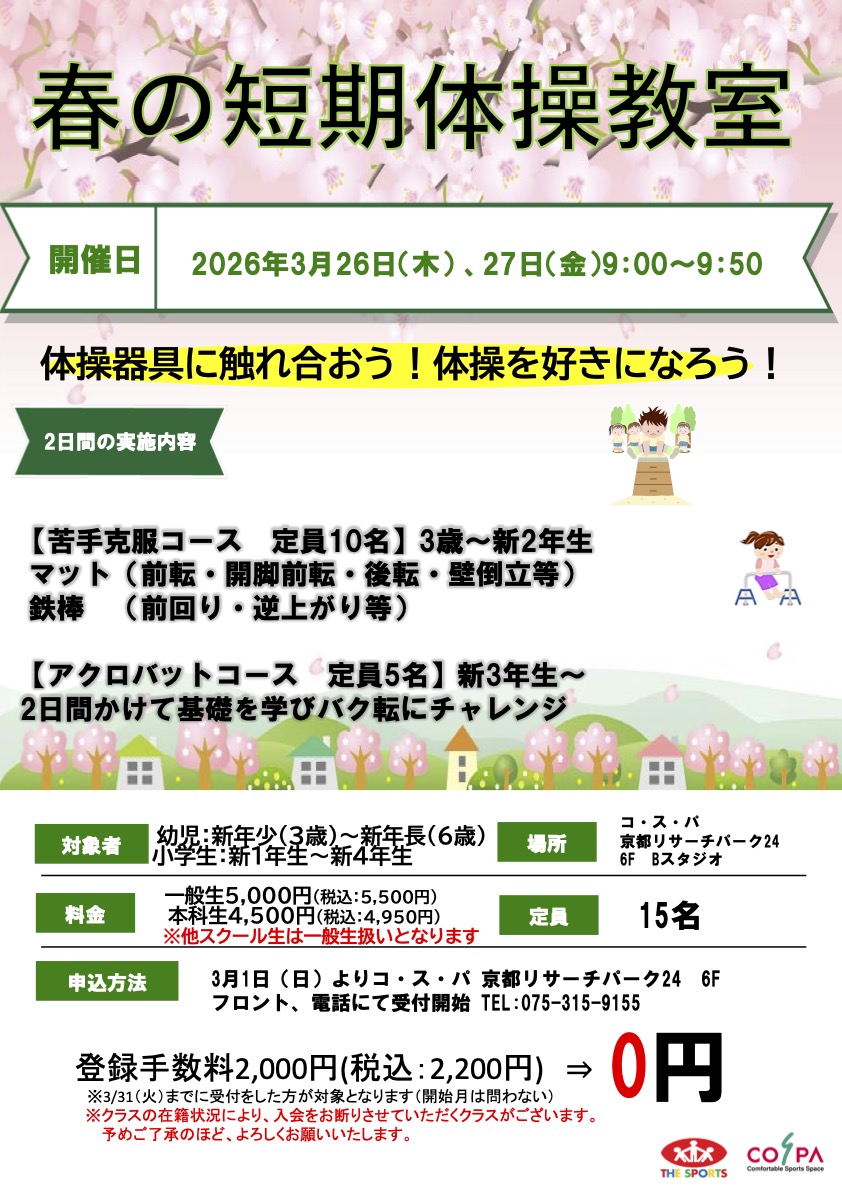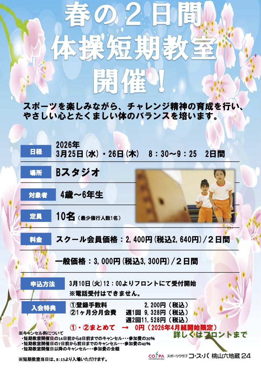 短期教室にご参加のお方は、お得な入会特典もご用意しております。